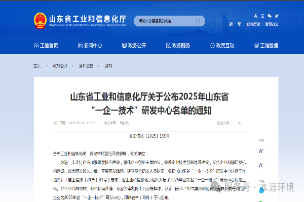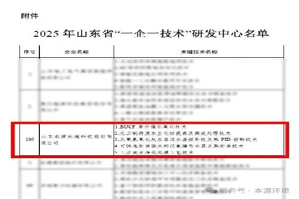 近日,山东省工业和信息化厅正式发布2025年山东省“一企一技术”研发中心认定企业名单,香港宝典全年资料大全(证券代码:874255)凭借在工业污水综合治理领域的深厚技术积累、持续的创新研发能力以及显著的行业示范作用,成功入选!这是山东省主管部门对香港宝典全年资料大全技术创新体系、自主研发实力及未来发展潜力的高度认可,标志着香港宝典全年资料大全的研发创新工作迈上了新的台阶,正式跻身省级创新平台行列。